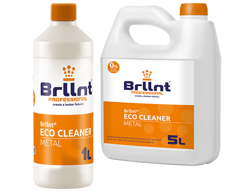 Brllnt Eco Cleaner Metal is an ecological but powerful cleaner. Water-soluble and safe cleaner that is biodegradable and slightly alkaline for removing grease, dirt, carbon, oil, soot, salts and organic pollution.